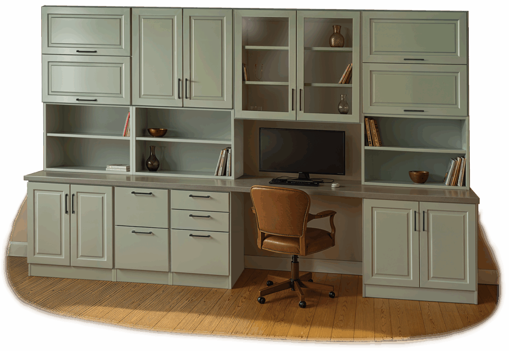 Get started today on the office of your dreams. Everthing you need is on this web site… cabinet choices, design help and a great online design tool. And help is always available if you need it.